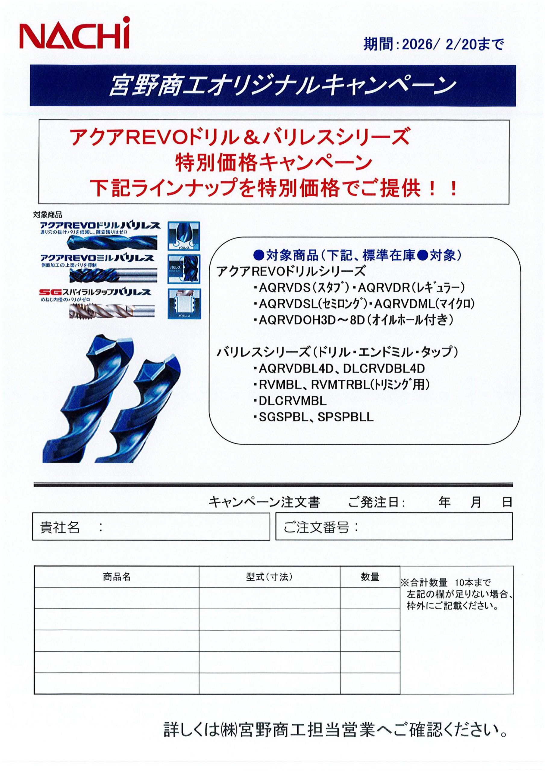 不二越の『アクアREVOドリル』と『バリレスシリーズ』を特別価格にてご提供いたします!