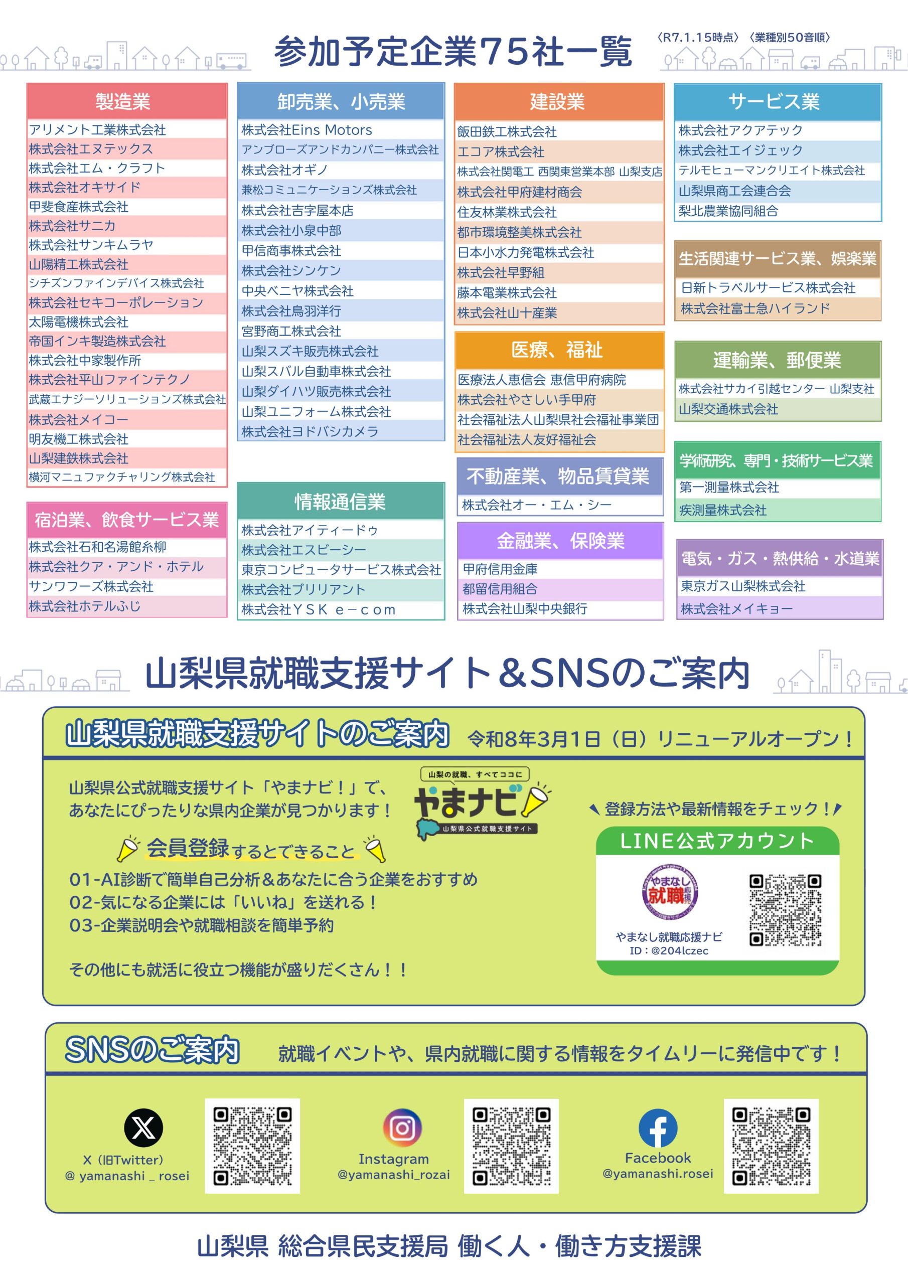 https://www.pref.yamanashi.jp/event/rosei-jin/ 0304/goudoshushokufea.html - 問合せ先:山梨県働く人・働き方支援課(055-223-1562)